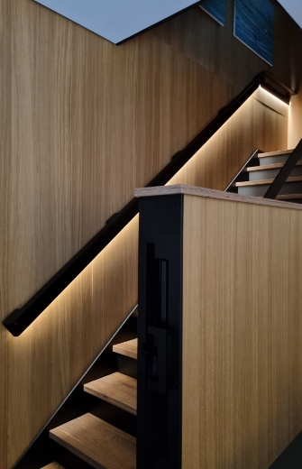 Hochwertige Materialien wurden ebenso sorgfältig ausgewählt wie die technische Ausstattung – stets mit dem Ziel, ein Höchstmaß an Qualität, Langlebigkeit und atmosphärischer Dichte zu erreichen. So entstand nicht einfach ein Gebäude, sondern ein Rückzugsort von architektonischer Klarheit und emotionaler Tiefe – geprägt von Leidenschaft und der Idee, aus einem besonderen Ort ein ganz persönliches Erlebnis zu machen.