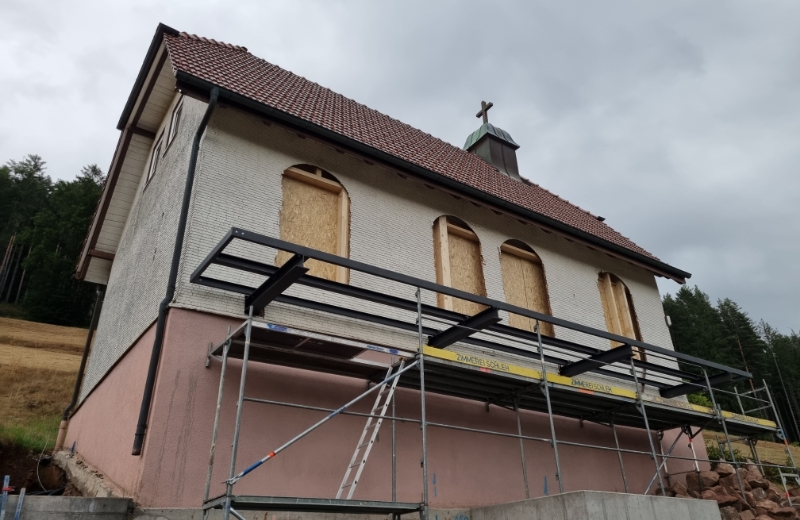 Die Umgestaltung der ehemaligen Viktoriakapelle in die Bergforelle war ein architektonisches Projekt von besonderer Sensibilität und gestalterischem Anspruch. Vom ersten Entwurf bis zur finalen Ausstattung stand der respektvolle Umgang mit der historischen Substanz im Mittelpunkt. Das Gebäude wurde vollständig entkernt – lediglich das charakteristische Walmdach und der Glockenturm blieben als sichtbare Zeichen der Vergangenheit erhalten. Auf diesem Fundament entstand ein neuer, klar strukturierter Raum, der traditionelle Elemente bewusst mit zeitgemäßer Formensprache verbindet.