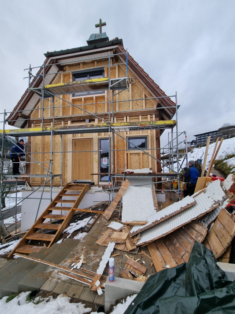 Die Umgestaltung der ehemaligen Viktoriakapelle in die Bergforelle war ein architektonisches Projekt von besonderer Sensibilität und gestalterischem Anspruch. Vom ersten Entwurf bis zur finalen Ausstattung stand der respektvolle Umgang mit der historischen Substanz im Mittelpunkt. Das Gebäude wurde vollständig entkernt – lediglich das charakteristische Walmdach und der Glockenturm blieben als sichtbare Zeichen der Vergangenheit erhalten. Auf diesem Fundament entstand ein neuer, klar strukturierter Raum, der traditionelle Elemente bewusst mit zeitgemäßer Formensprache verbindet.