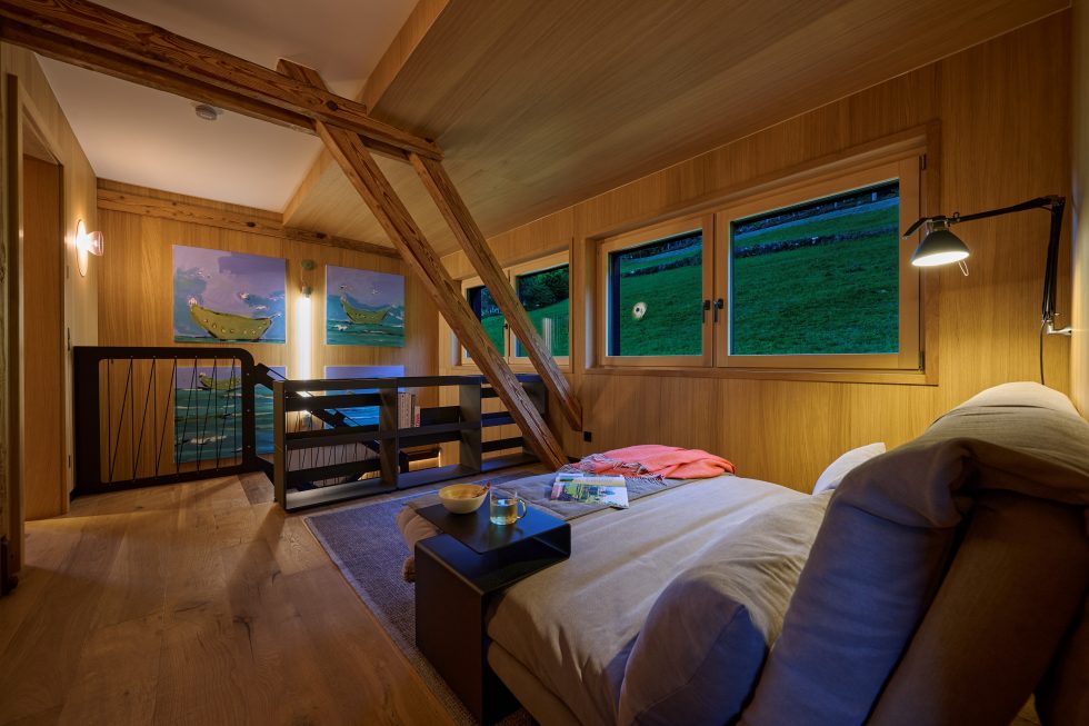 Natürliche Materialien, Naturtextilien und warme Oberflächen prägen das Ambiente. Jeder Raum wurde so gestaltet, dass er Ruhe ausstrahlt und gleichzeitig eine stilvolle Bühne für entspannte Tage bietet – sei es beim Lesen, beim Zusammensitzen oder einfach im stillen Genießen der Umgebung.