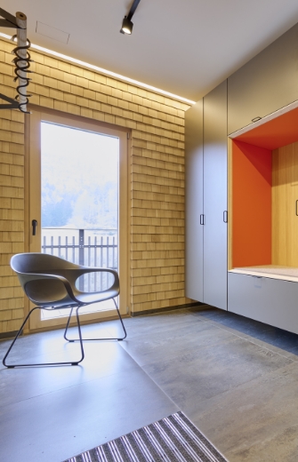 Die Bergforelle lebt von ihrer Verbindung zur umgebenden Natur. Ob auf dem raumbreiten Balkon, auf den privaten Sitzplätzen rund ums Haus oder durch die großflächigen Fenster – das Draußen wird Teil des Innen.